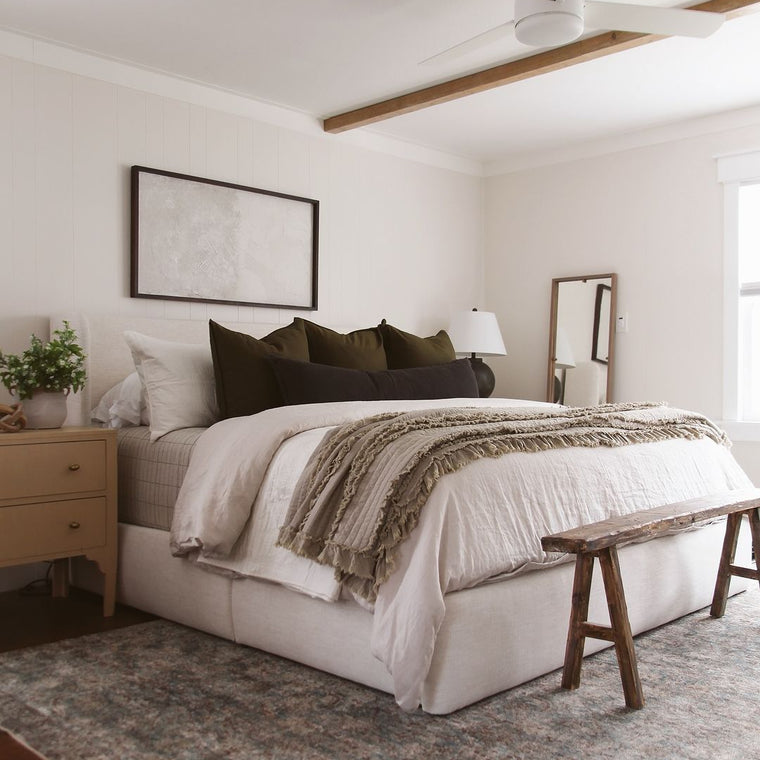 Stone washed for a relaxed, lived-in texture that brings warmth and modern farmhouse charm to your bedroom.